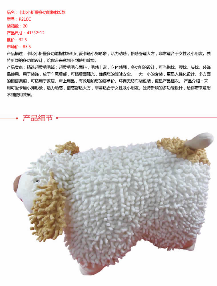 卡比小折叠多功能抱枕采用可爱卡通小狗形象,活力动感,倍感舒适大方,非常适合于女性及小朋友。独特新颖的多功能设计,给你带来意想不到使用效果。