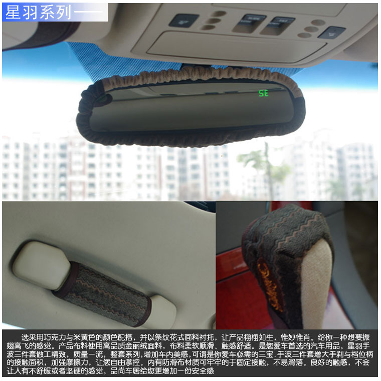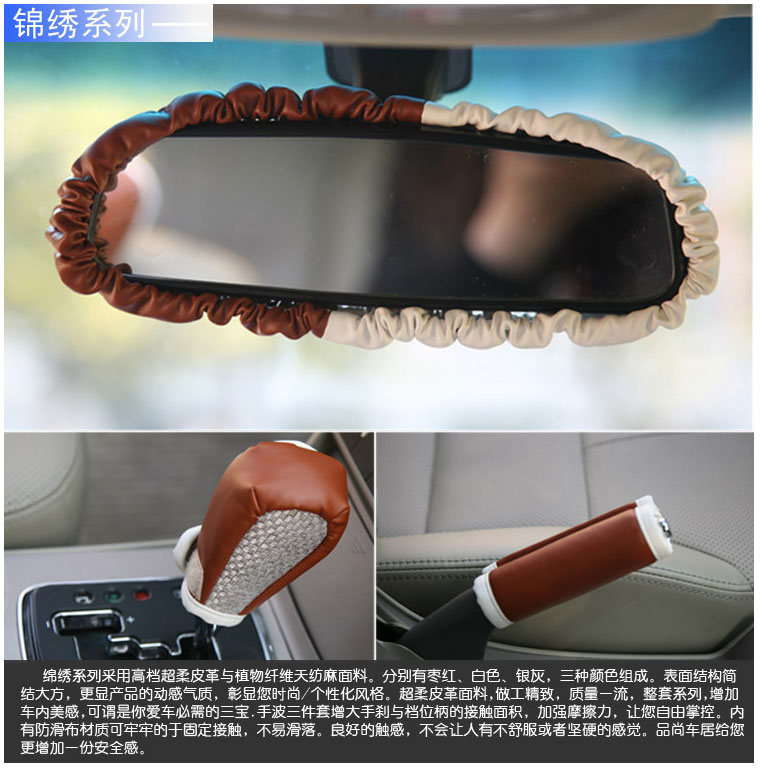 手波三件套增大手刹与档位柄的接触面积,加强摩擦力,让您自由掌控。内有防滑布材质可牢牢的于固定接触,不易滑落。
