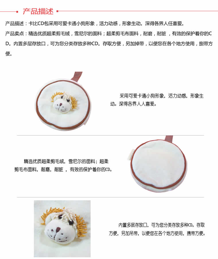 卡比CD包采用可爱卡通小狗形象,活力动感,形象生动。深得各界人任喜爱。