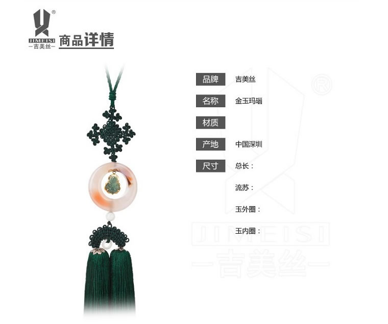 精品商城 >内饰精品> 精致摆件挂件> 吉美丝 天然玛瑙 翡翠吊挂 高档汽车挂饰-金玉玛瑙(绿色)