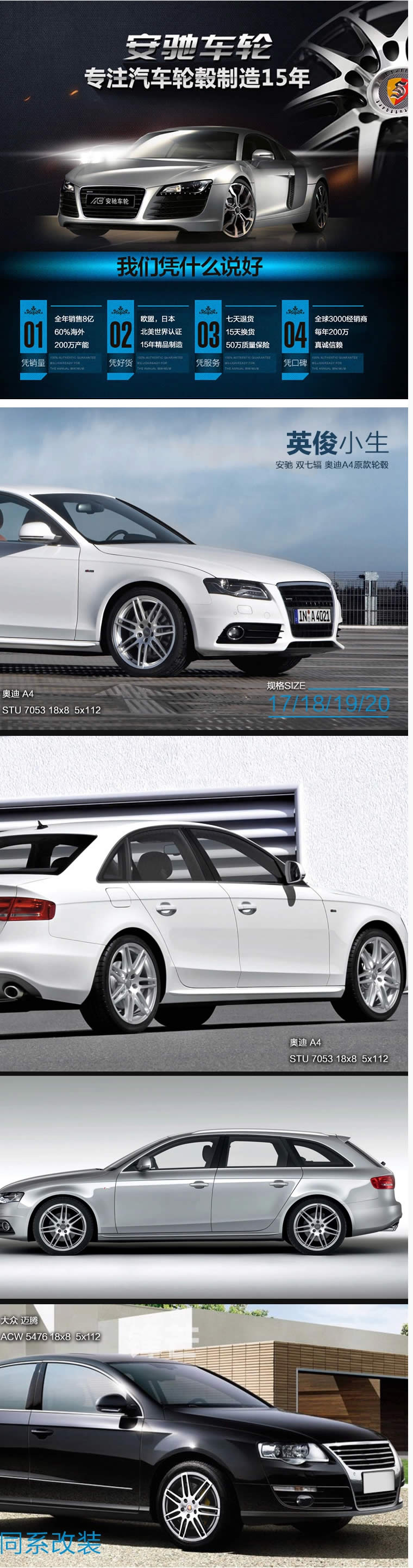精品商城 >车辆改装> 轮毂改装> 【安驰车轮】A3A4A5A6A7Q5途观17寸汽车铝合金改装轮毂正品
