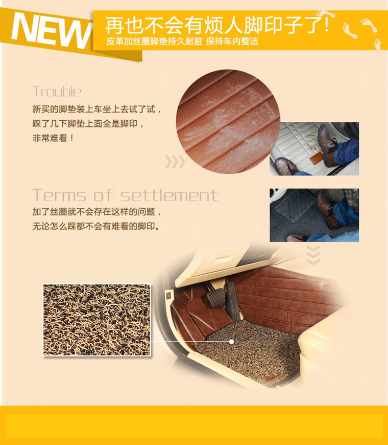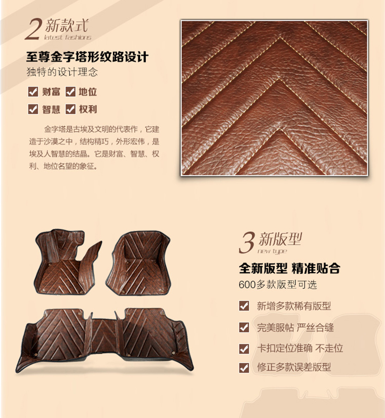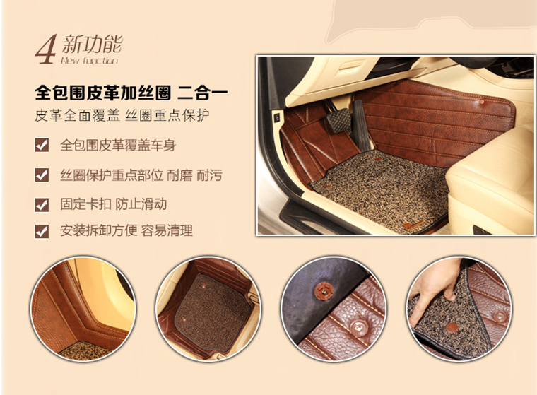 精品商城 >坐垫脚垫> 专车专用脚垫> 大皮纹超纤变脸脚垫(需根据具体车型进行订做,麻烦亲们下单时,记得一定备注好车型和脚垫颜色。)