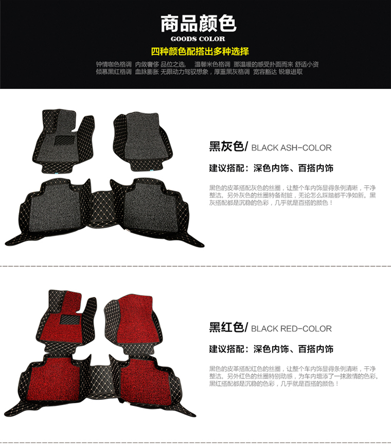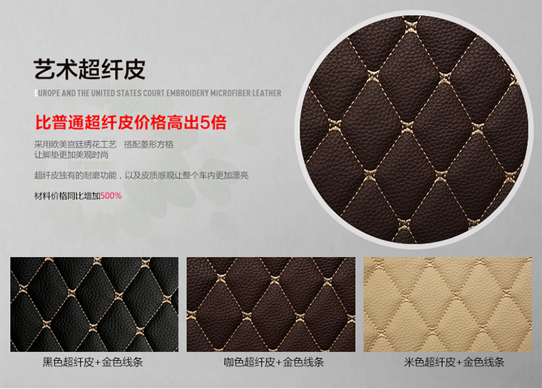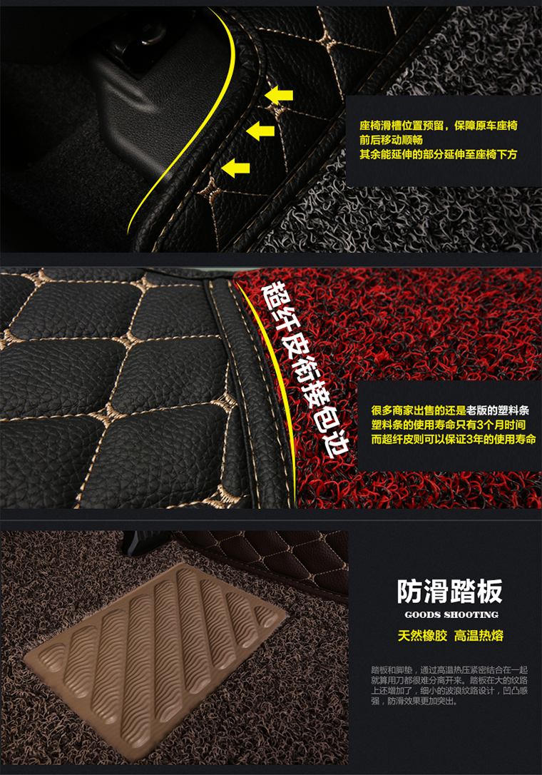 精品商城 >坐垫脚垫> 专车专用脚垫> 进口超纤皮变脸脚垫(需根据具体车型进行订做,麻烦亲们下单时,记得一定备注好车型和脚垫颜色。)