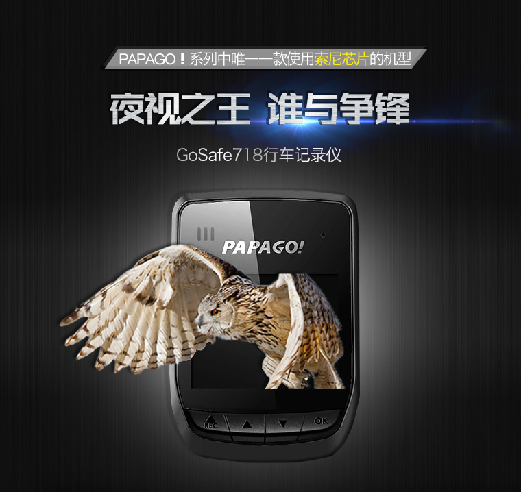 PAPAGO-GS718  1080P 1357°广角Full HD 超清夜视行车记录仪(买就送价值38元8GTF内存卡一张)