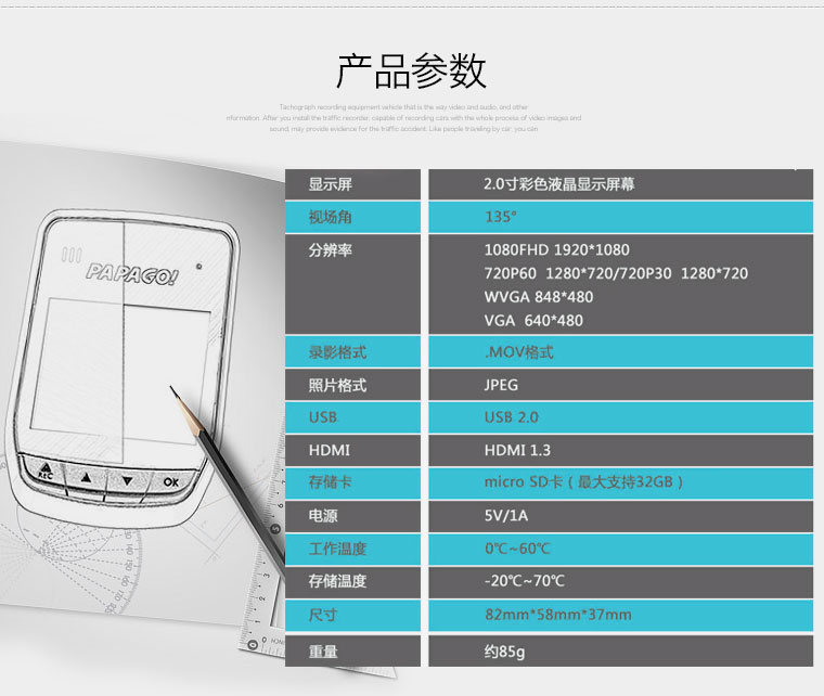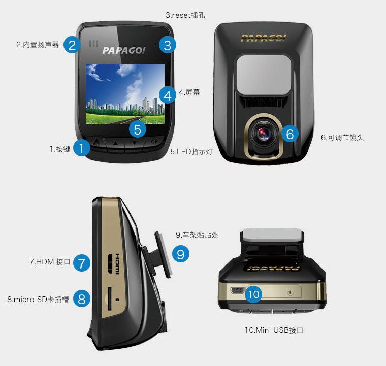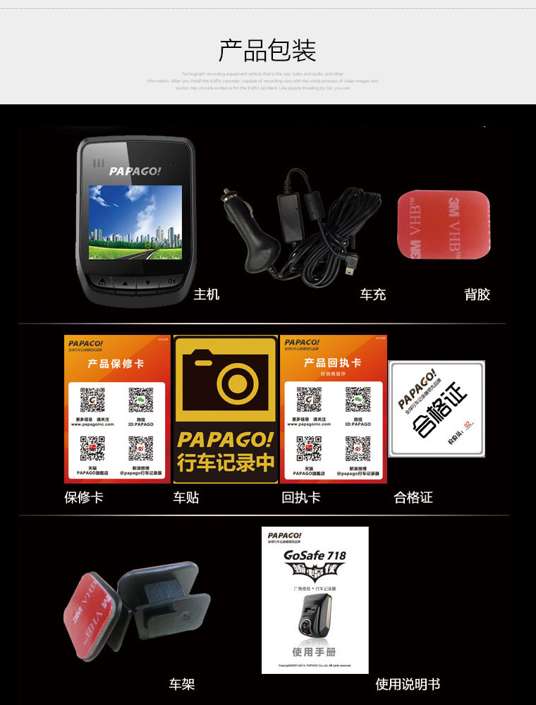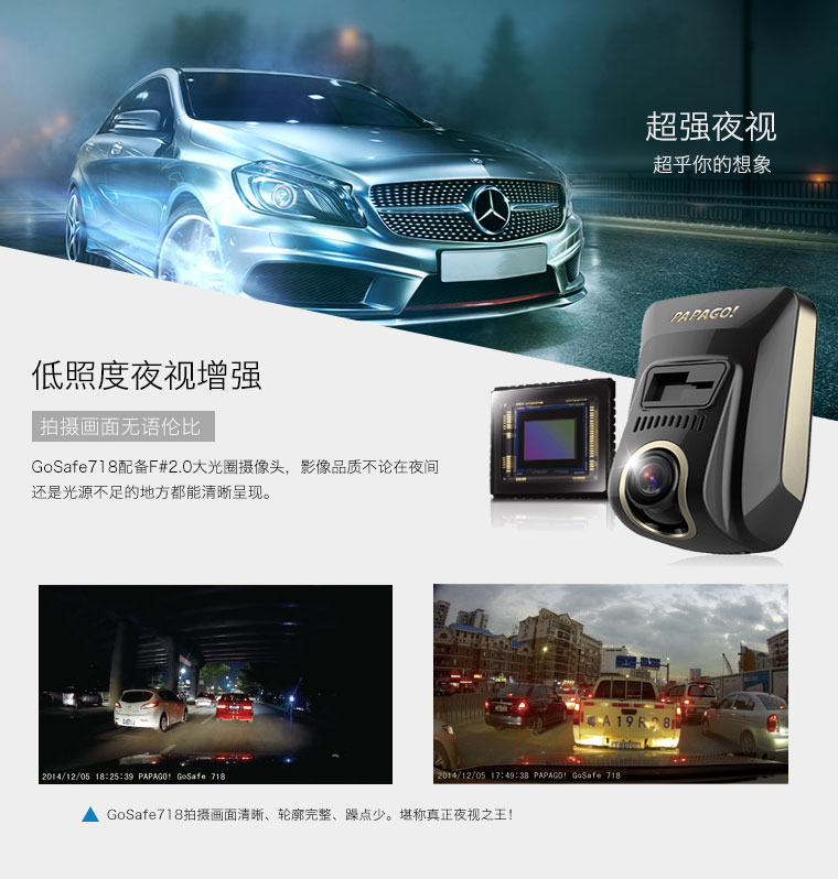 精品商城 >车载小电器> 行车记录仪> PAPAGO-GS718 1080P 1357°广角Full HD 超清夜视行车记录仪(买就送价值38元8GTF内存卡一张)