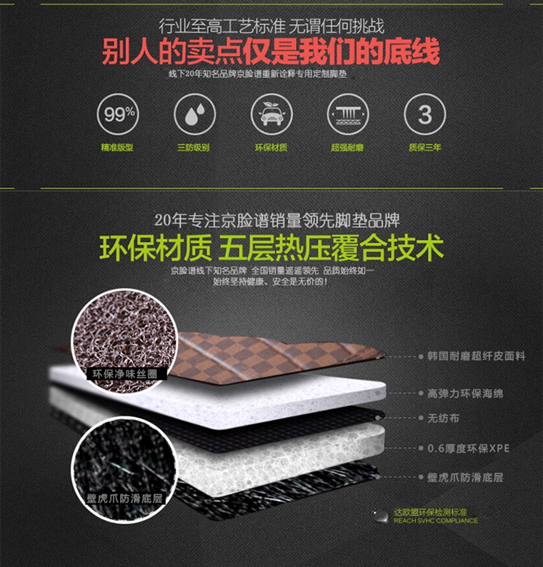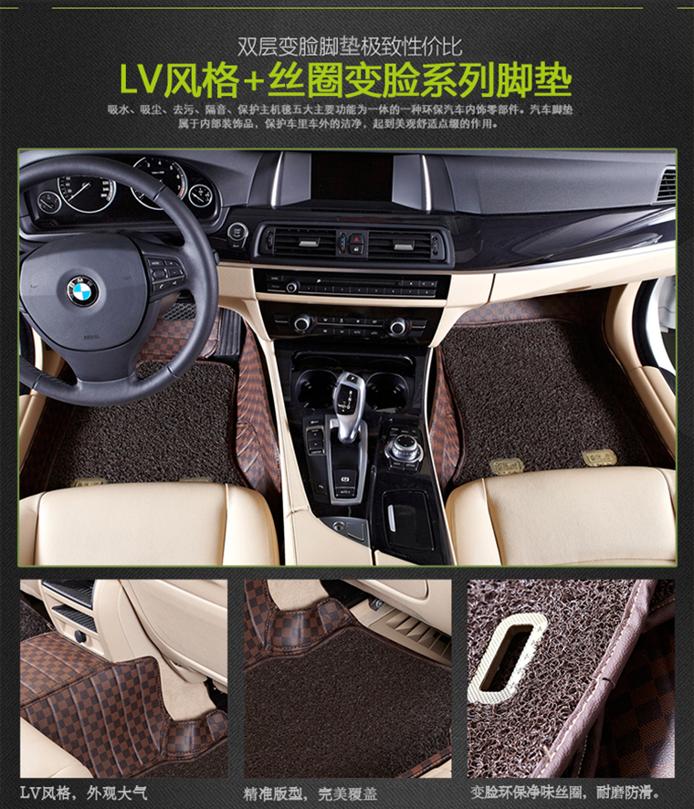 11号店专属O2O产品,皮革丝圈二合一多功能变脸豪华型。健康环保高端定制变脸脚垫,为保证最好的装车效果,您可下单后选择到店安装。