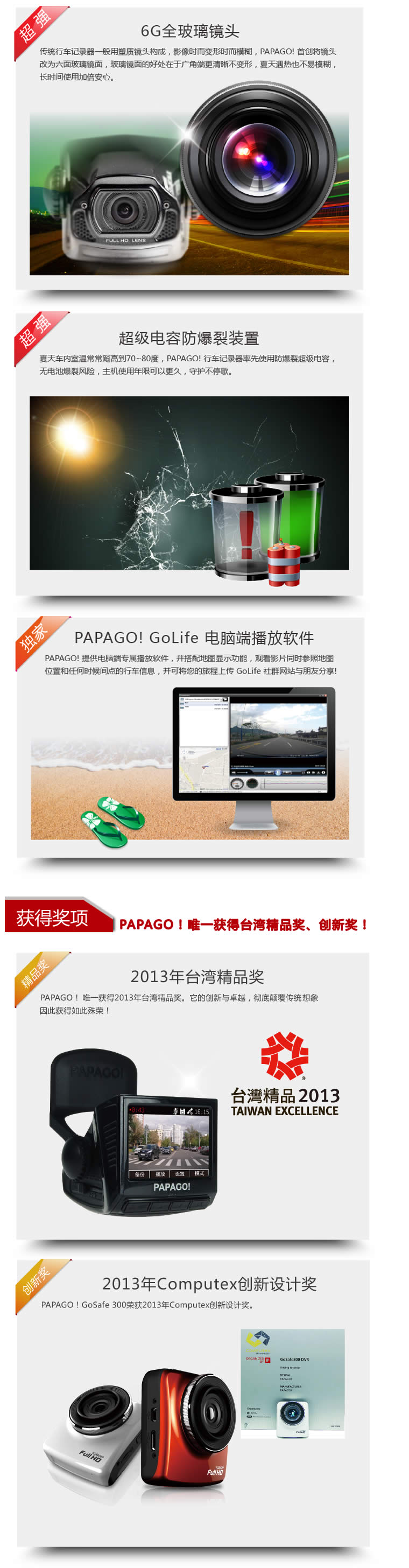 PAPAGO-GS110 720P 126°广角 移动侦测行车记录仪