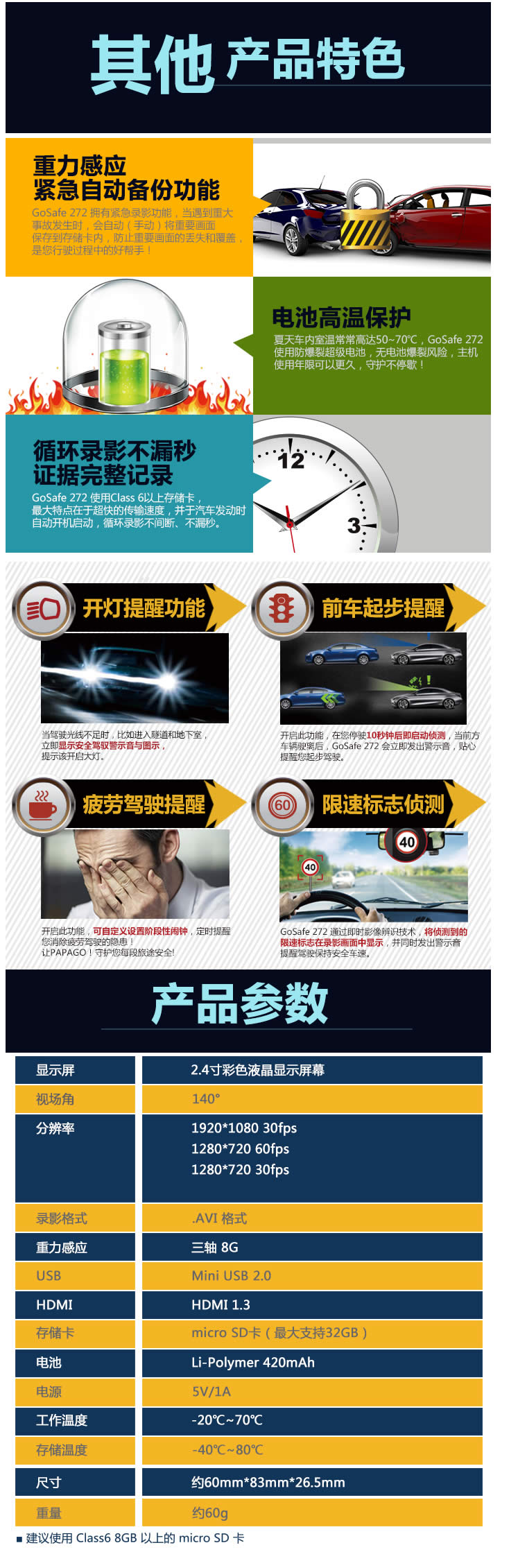 上门服务类 >安装服务> 行车记录仪> PAPAGO-GS272 1080P 127°广角Full HD夜视行车记录仪