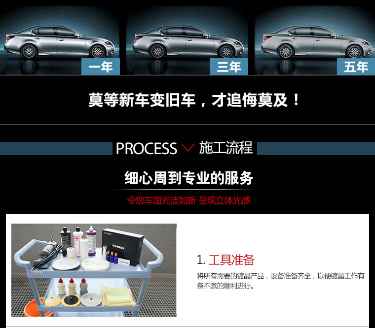 汽车美容 >漆面护理> 漆面镀晶> 极品镀晶 单次(轿车、新品上市)