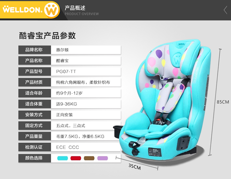 惠尔顿 酷睿宝  车载婴儿宝宝座椅9月-12岁 (苹果红)