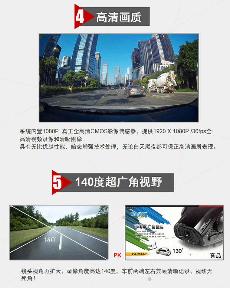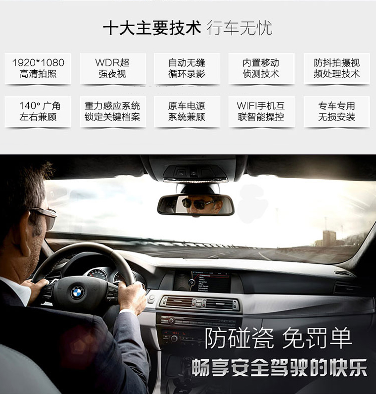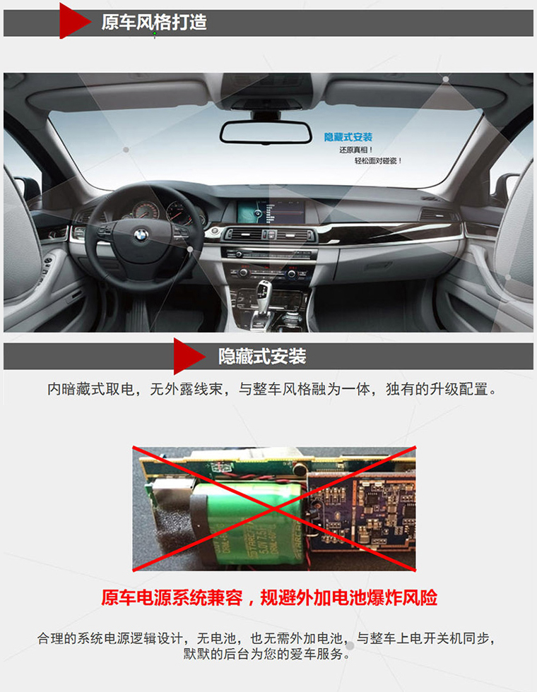 迈卡盾  隐藏式行车记录仪  140°广角 1080P画质  专车专用