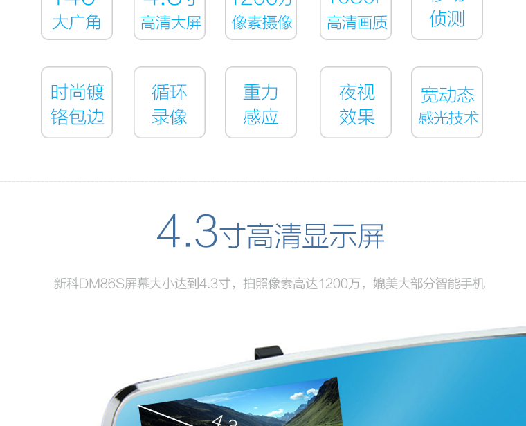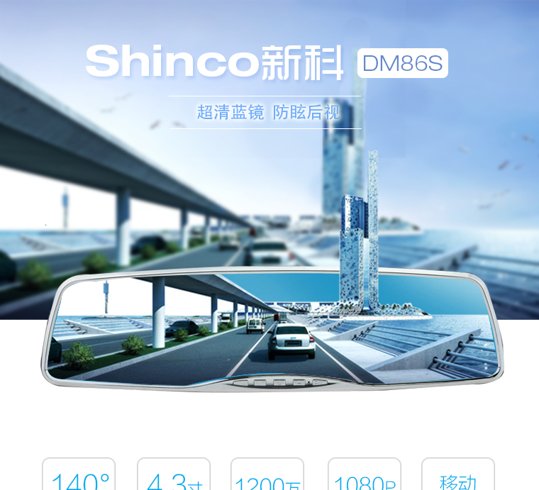 精品商城 >车载小电器> 行车记录仪> 新科DM86S后视镜行车记录仪1080P高清1200万像素超大广角停车监控