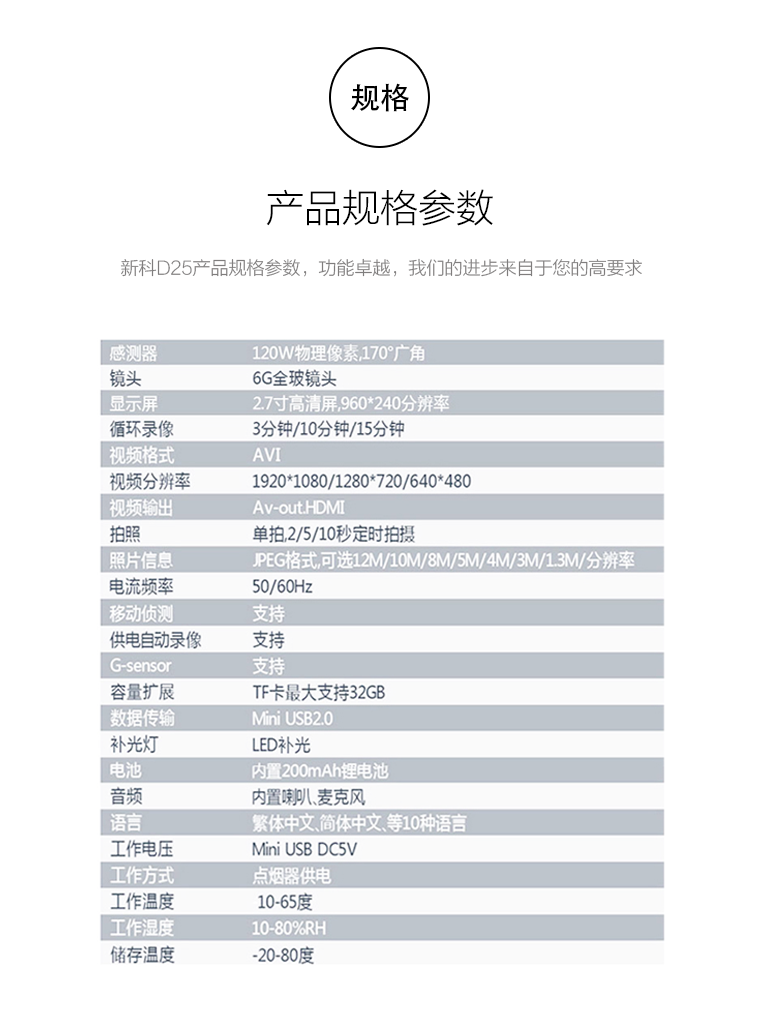 新科D25行车记录仪 1080P高清170°广角夜视 1200万像素