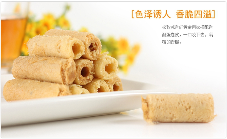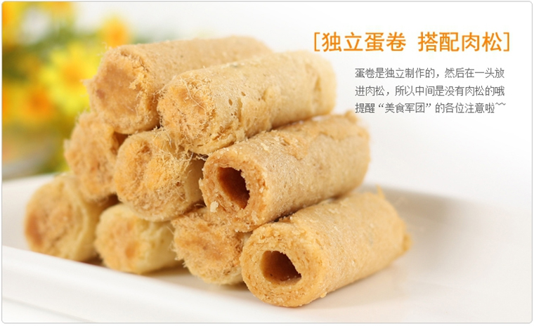 精品商城 >11店超市> 休闲零食> 誉海肉松蛋卷(咸酥原味) 此商品仅适用于成都范围