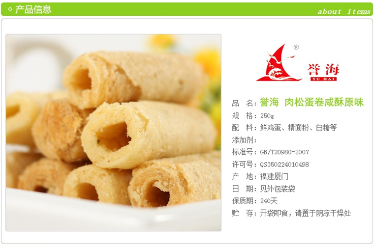 誉海肉松蛋卷(咸酥原味) 此商品仅适用于成都范围