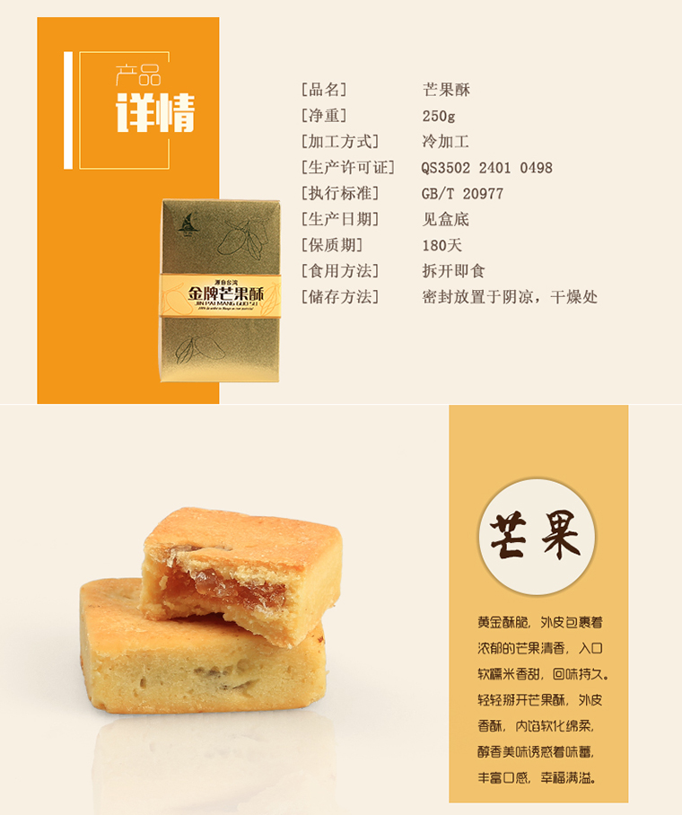 精品商城 >11店超市> 休闲零食> 誉海金牌芒果酥 此商品仅适用于成都范围