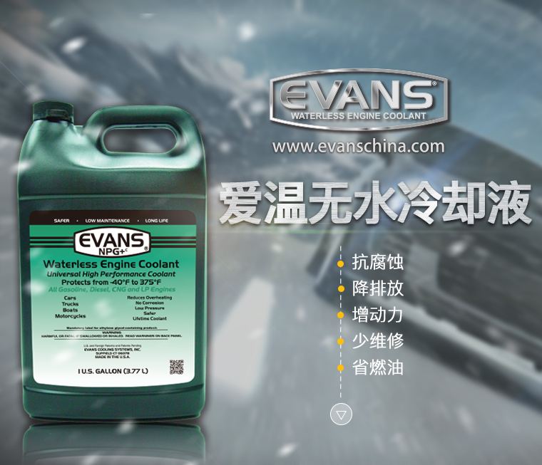 一次加入,无需更换;高沸点191℃,低凝点-40℃;抗腐蚀,低或无压力,保护发动机