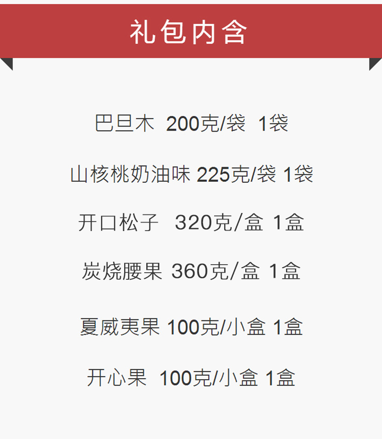 【巴旦木1袋、山核桃奶油味1袋、开口松子1盒、炭烧腰果1盒、夏威夷果1盒、开心果1盒】(此商品仅适用于成都范围)