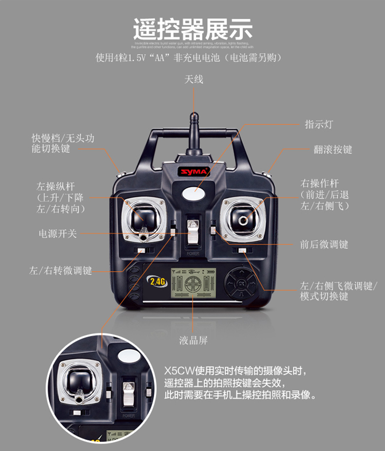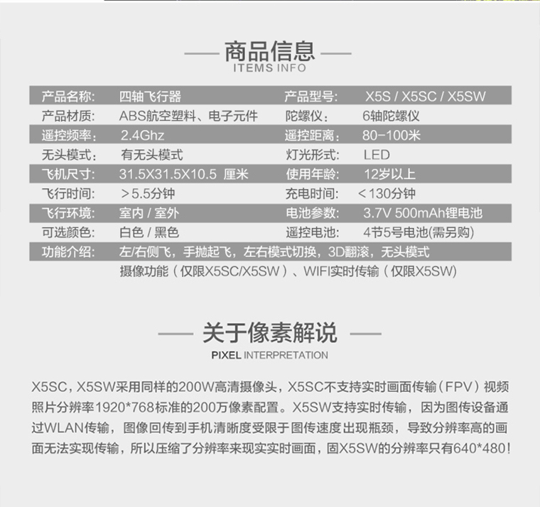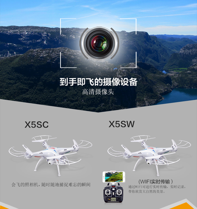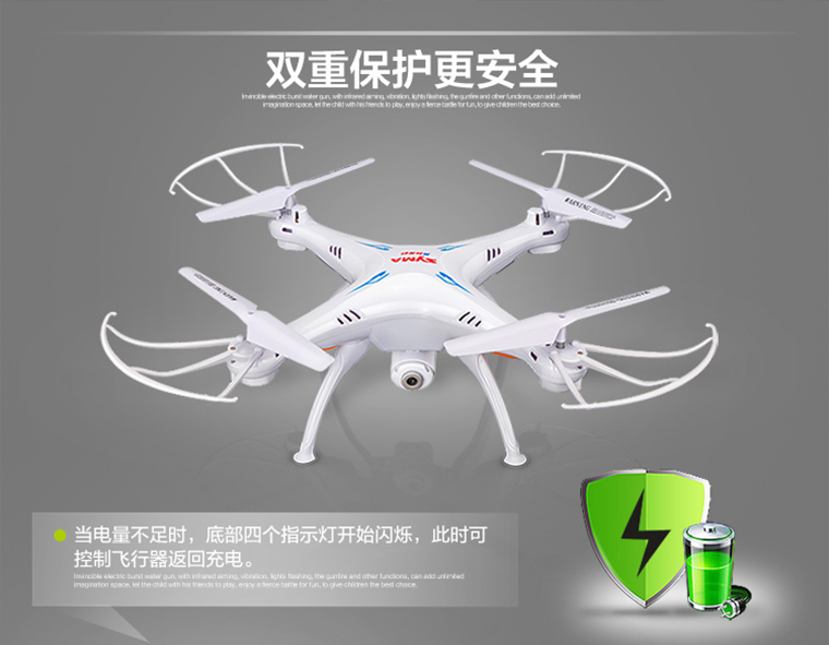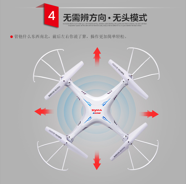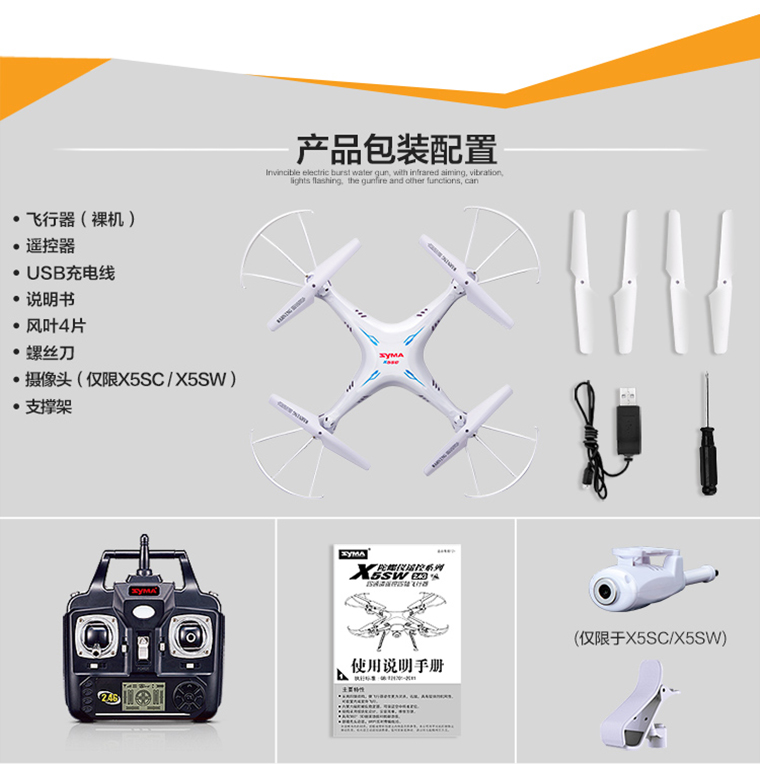 精品商城 >儿童乐园> 遥控航模> SYMA司马航模X5SW实时无人机专业航拍飞行器四轴防撞遥控飞机耐摔超大直升机儿童玩具 X5SW航拍 实时手机FPV传输(白色)