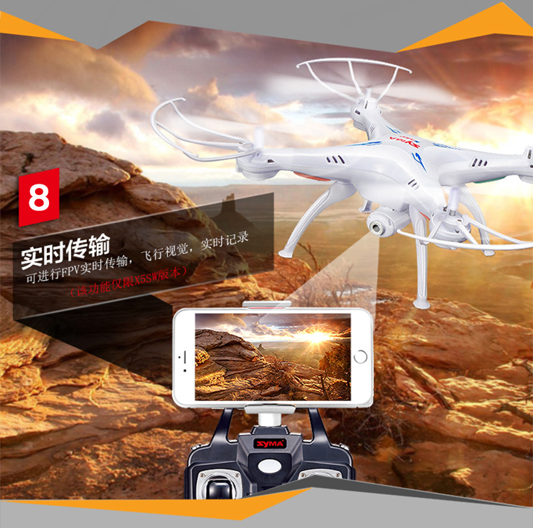 SYMA司马航模X5SW实时无人机专业航拍飞行器四轴防撞遥控飞机耐摔超大直升机儿童玩具 X5SW航拍 实时手机FPV传输(白色)