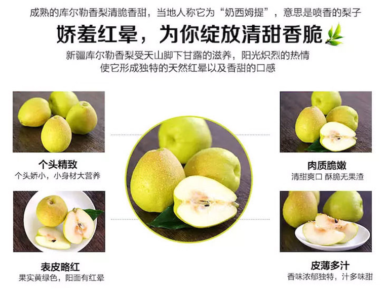 精品商城 >11店超市> 水果类> 新疆库尔勒 香梨 24个(约5斤)装 此商品仅限成都范围内销售 友情提示:周六、周天不配送