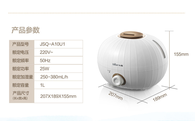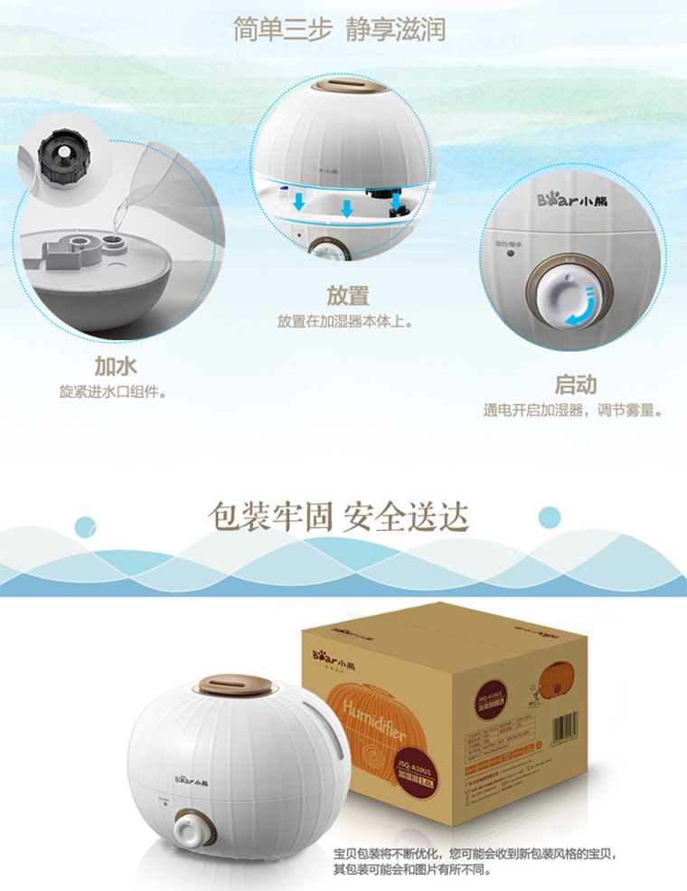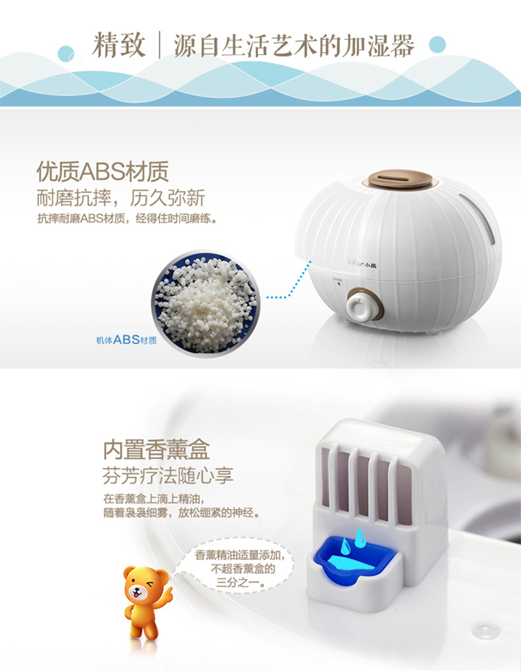 精品商城 >11店超市> 生活家电> Bear/小熊 JSQ-A10U1加湿器 家用迷你静音办公室增湿香薰 (由小熊厂家发货,配货周期为3-5天)