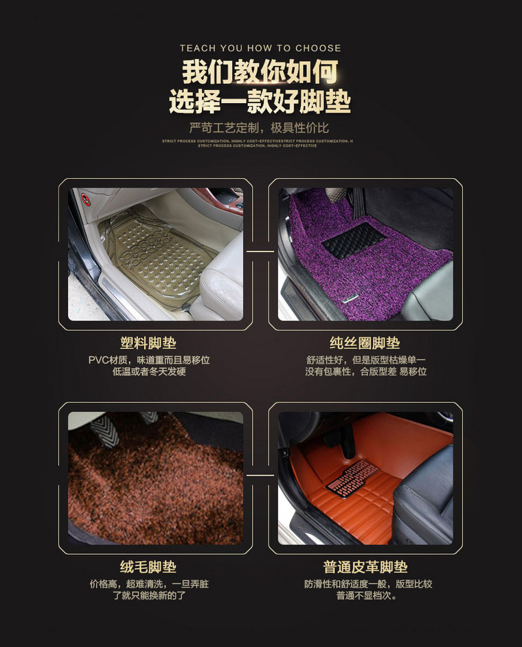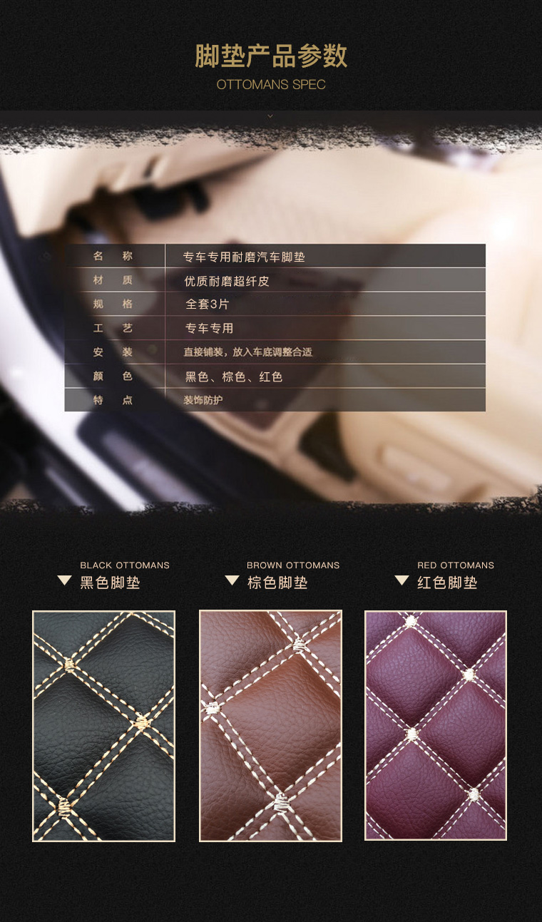精品商城 >坐垫脚垫> 专车专用脚垫> 靖翔 小方格双线 超纤皮革全覆盖脚垫(轿车、越野车) 限5座及5座以下 下单时请备注好车型年款及脚垫颜色