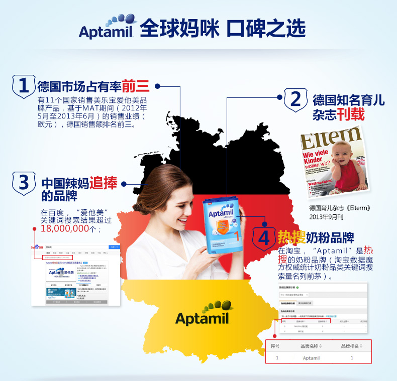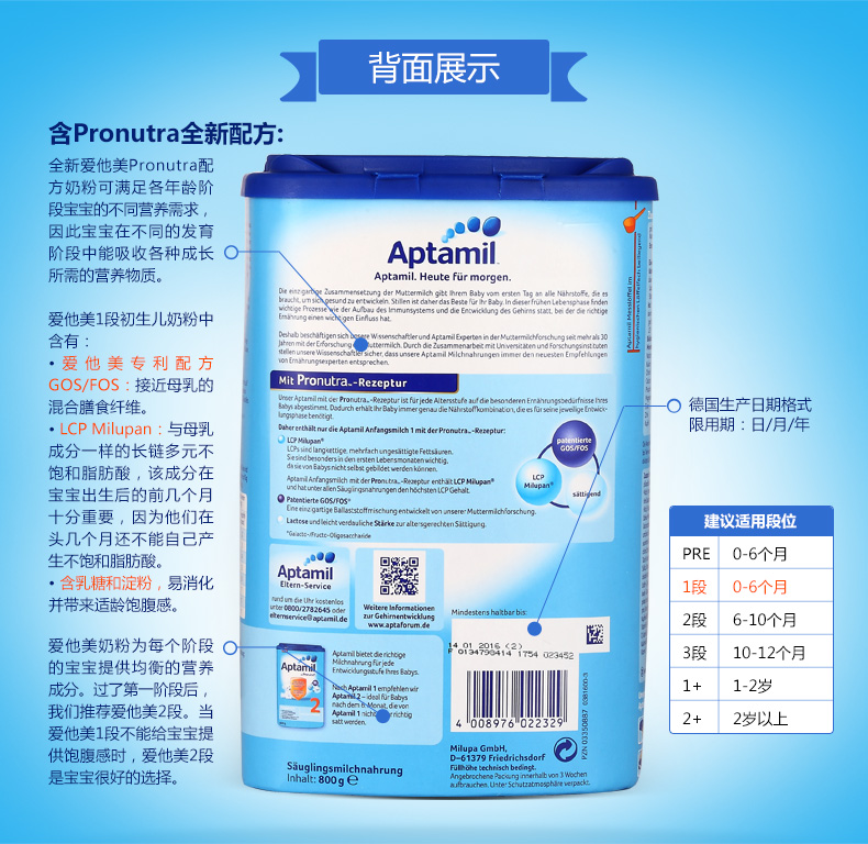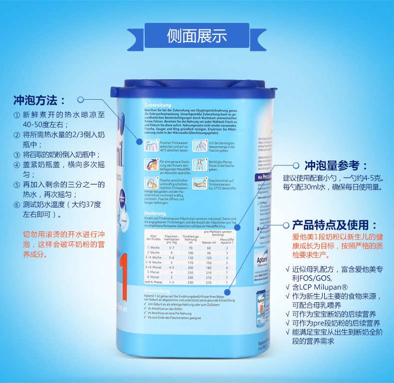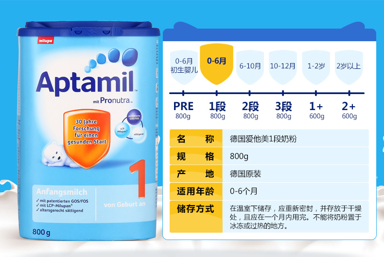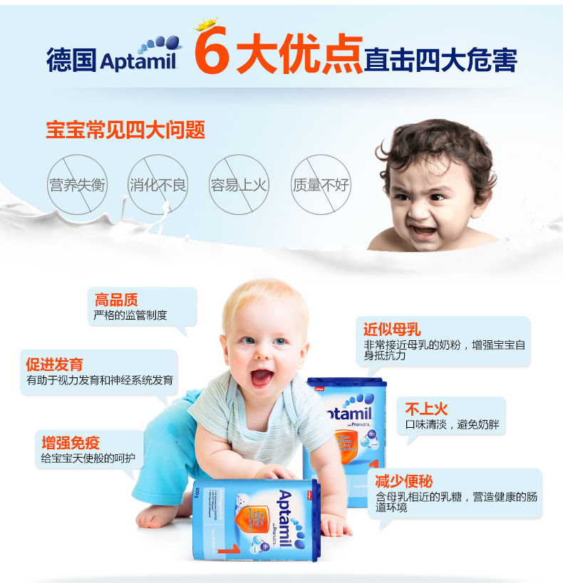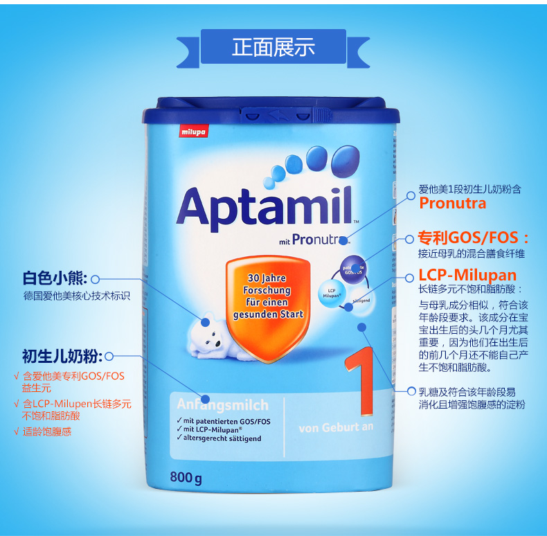 精品商城 >欧品特供> 母婴奶粉> 【德国】原装进口Aptamil爱他美婴儿配方奶粉1段(0-6月)