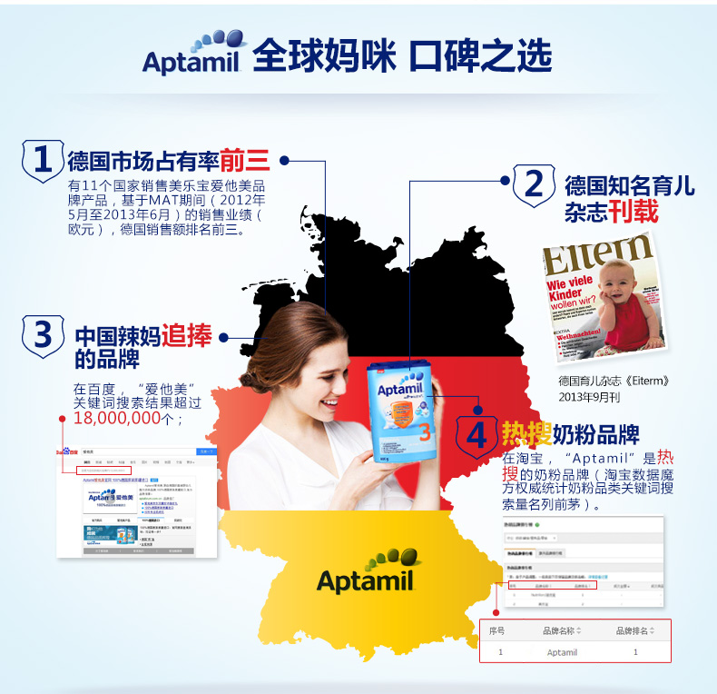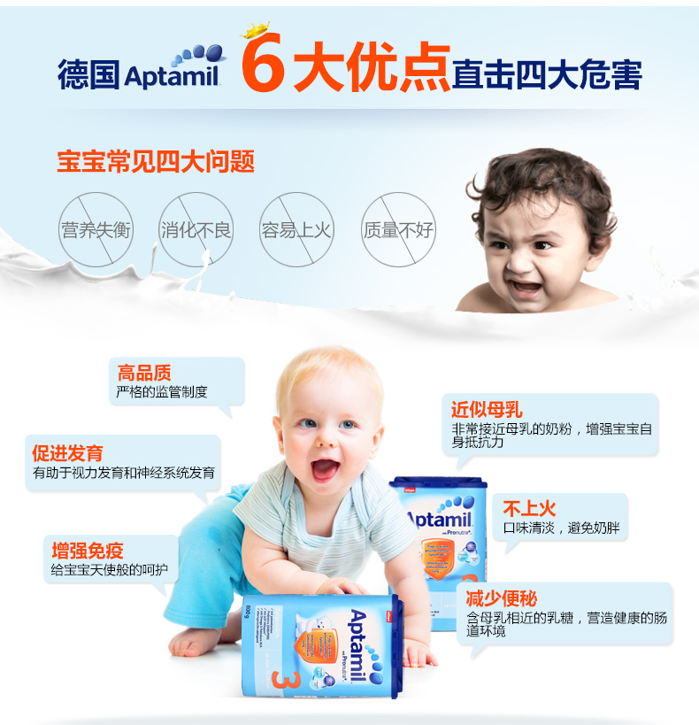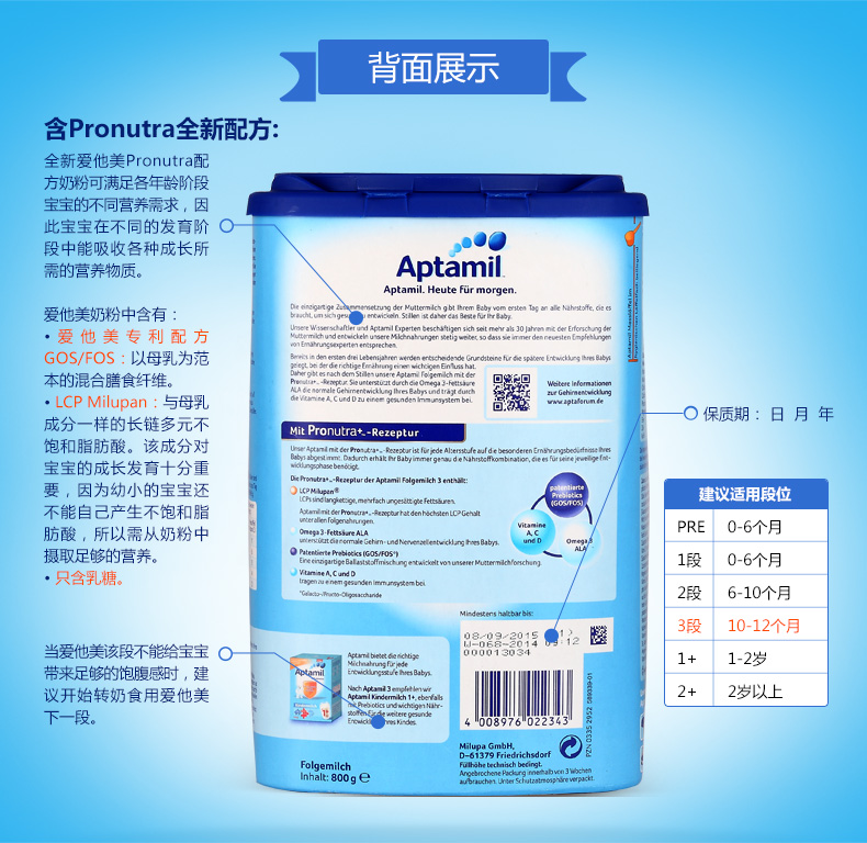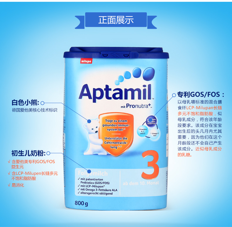精品商城 >欧品特供> 母婴奶粉> 【德国】原装进口Aptamil爱他美婴儿配方奶粉3段(10-12月)