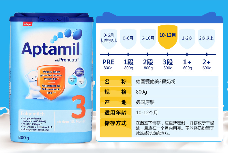 【德国】原装进口Aptamil爱他美婴儿配方奶粉3段(10-12月)