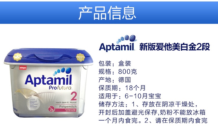 精品商城 >欧品特供> 母婴奶粉> 【德国】原装进口爱他美aptamil(白金版)婴儿配方奶粉 2段(6-10月)