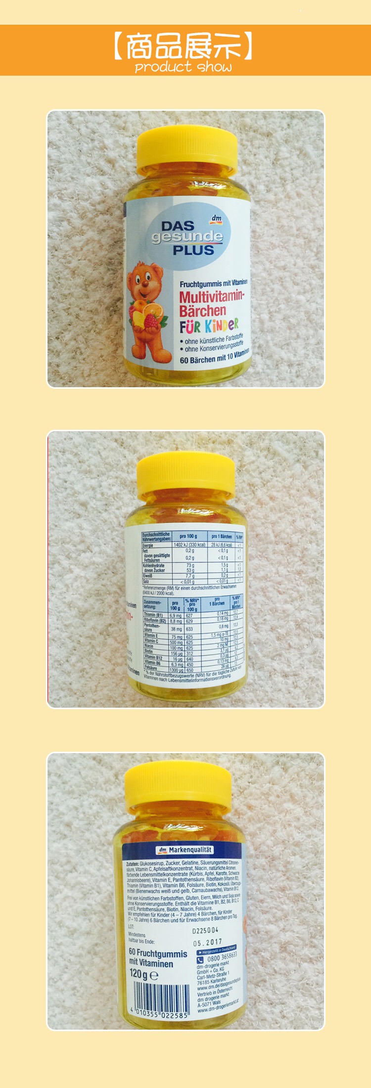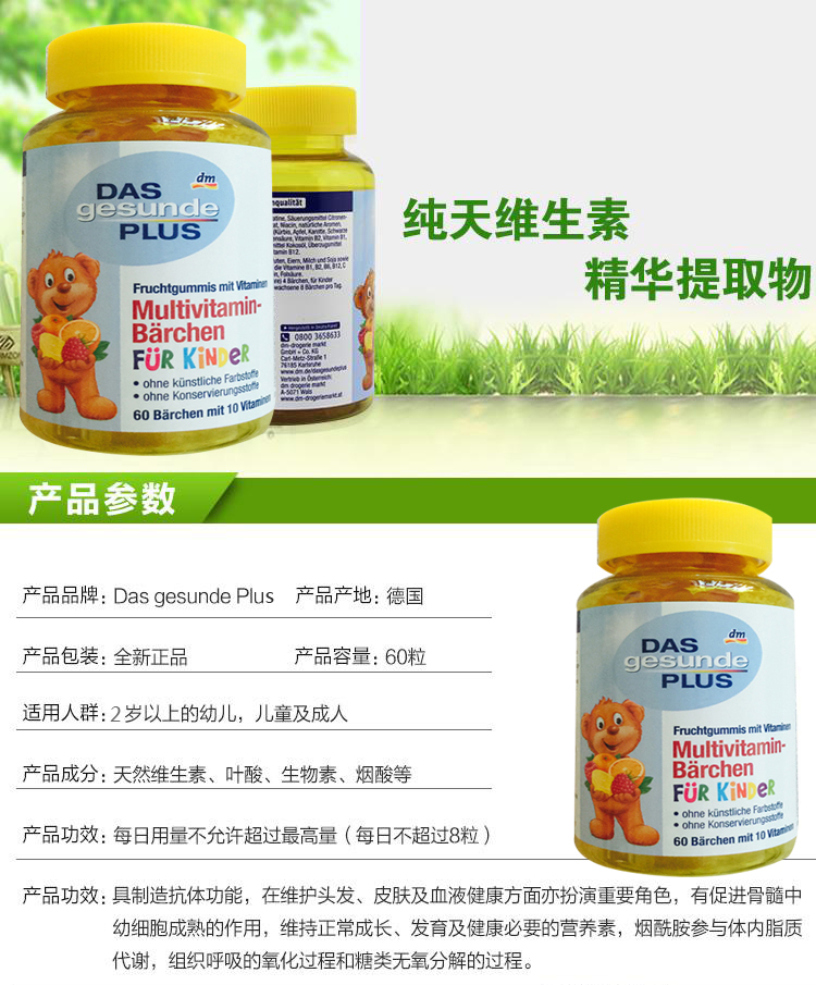 【德国】原装进口DAS gesunde PLUS儿童多种复合维生素小熊软糖 120g/60粒
