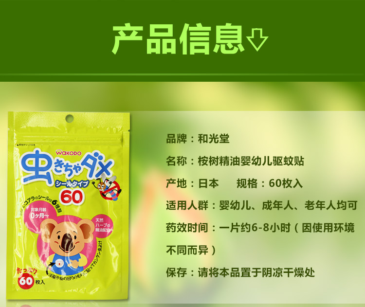 精品商城 >欧品特供> 儿童用品> 【日本】原装进口和光堂驱蚊贴