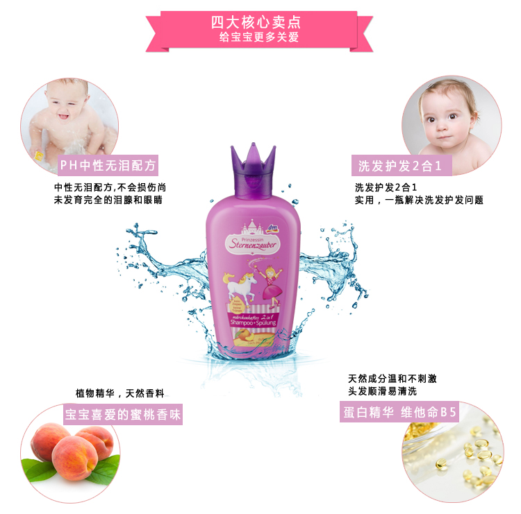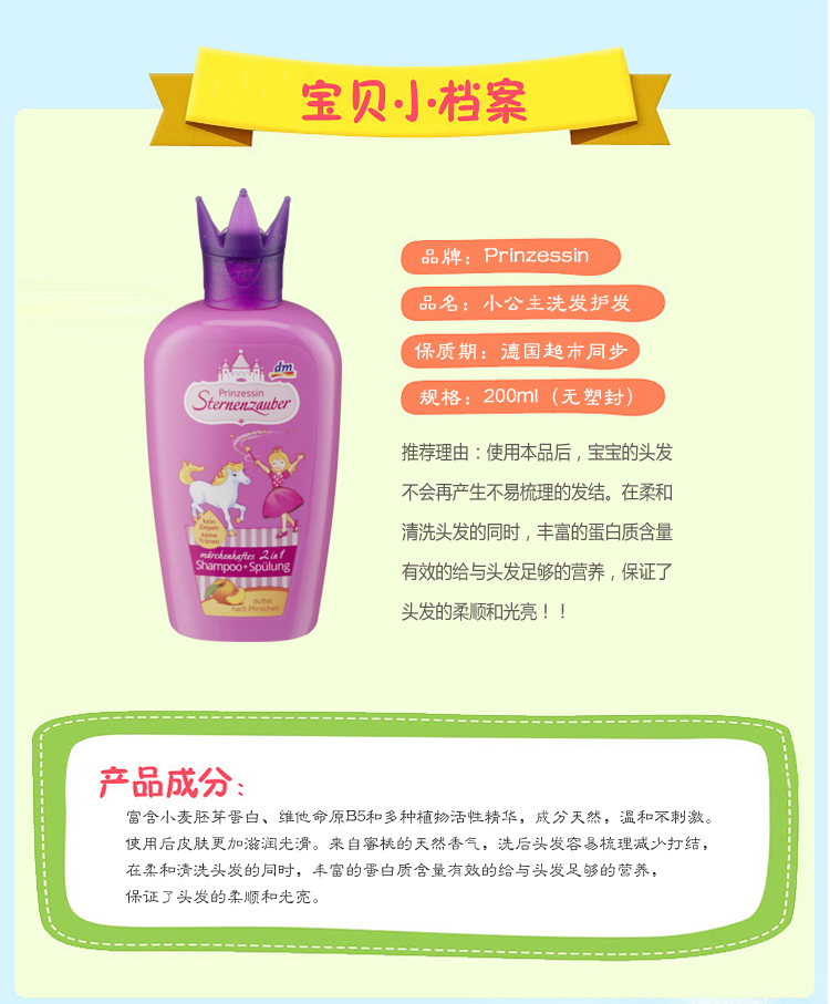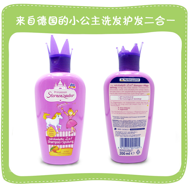 精品商城 >欧品特供> 儿童用品> 【德国】prinzessin魔法星小公主儿童柔顺洗发护发露2合1 200ml (红色)