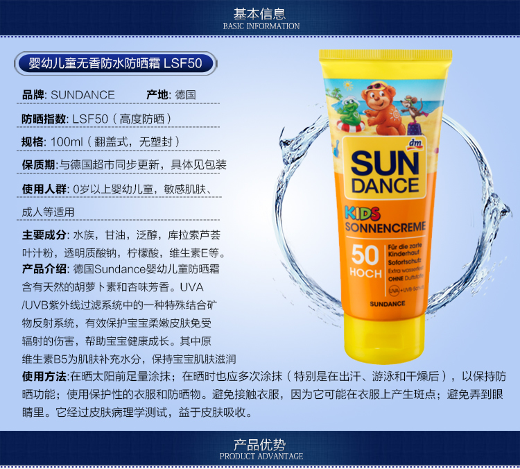 精品商城 >欧品特供> 儿童用品> 【德国】DM Sundance儿童防晒乳/面部/身体适用 【50倍】