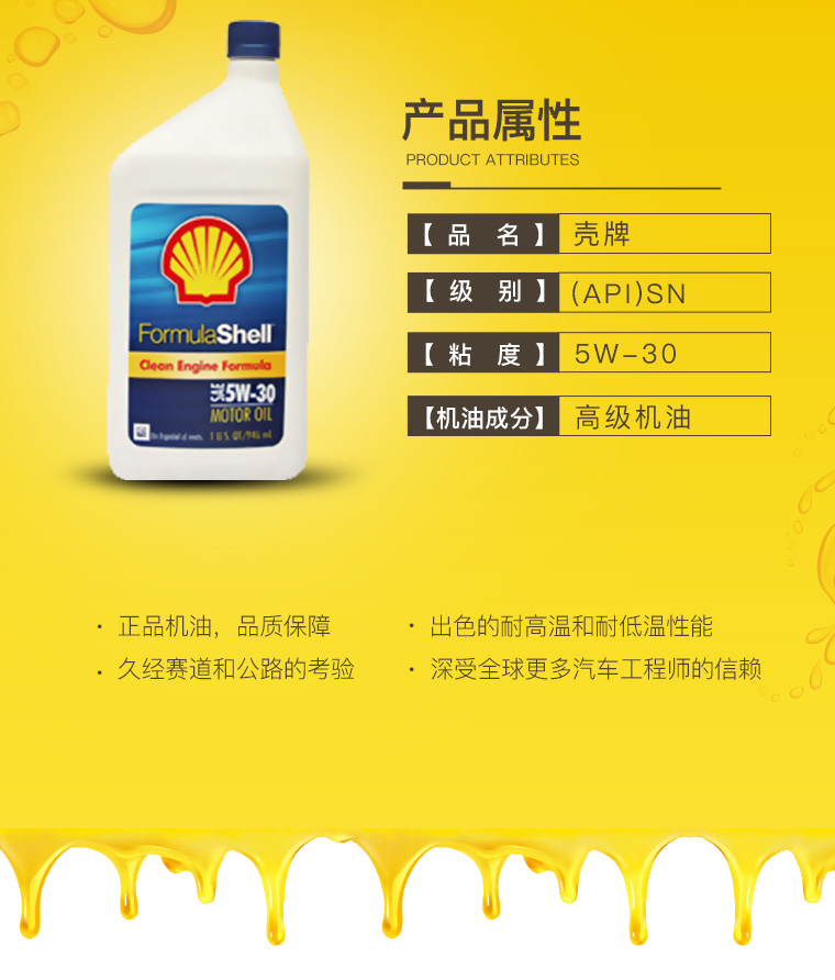 服务包含:壳牌高级机油5W30(1QT) 4瓶,品牌专用机油格。