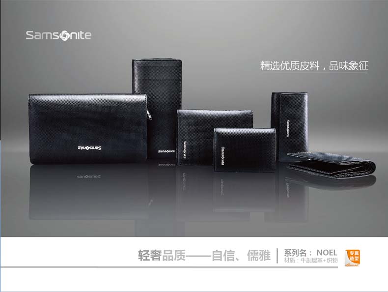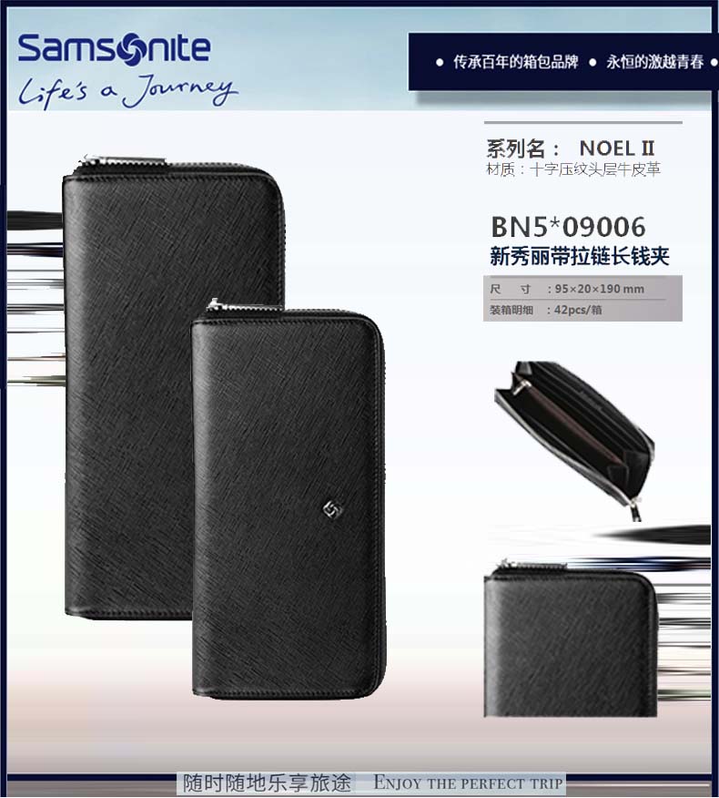 新秀丽带拉链长钱夹 十字压纹头层牛皮 国际大牌【全国联保】