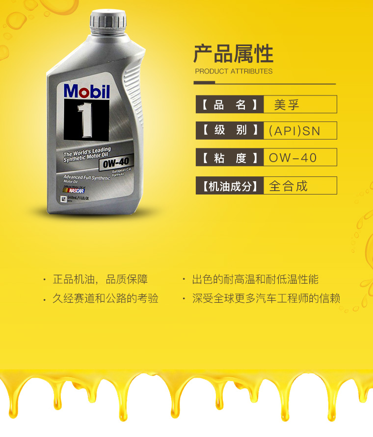服务包含:美孚1号 0W40全合成机油(1QT) 6瓶,品牌专用机油格。
