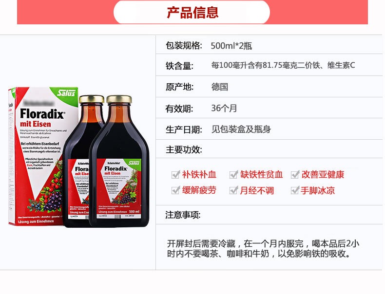 精品商城 >11店超市> 营养保健> 【德国】原装进口红铁500ml 补铁补血