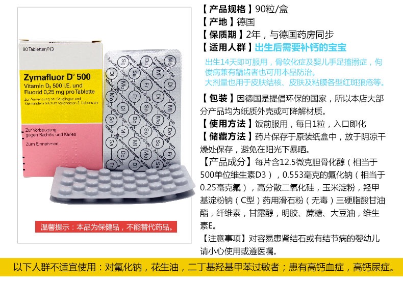 【德国】原装进口诺华D500 VD维生素D钙片90粒