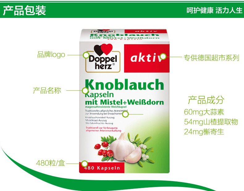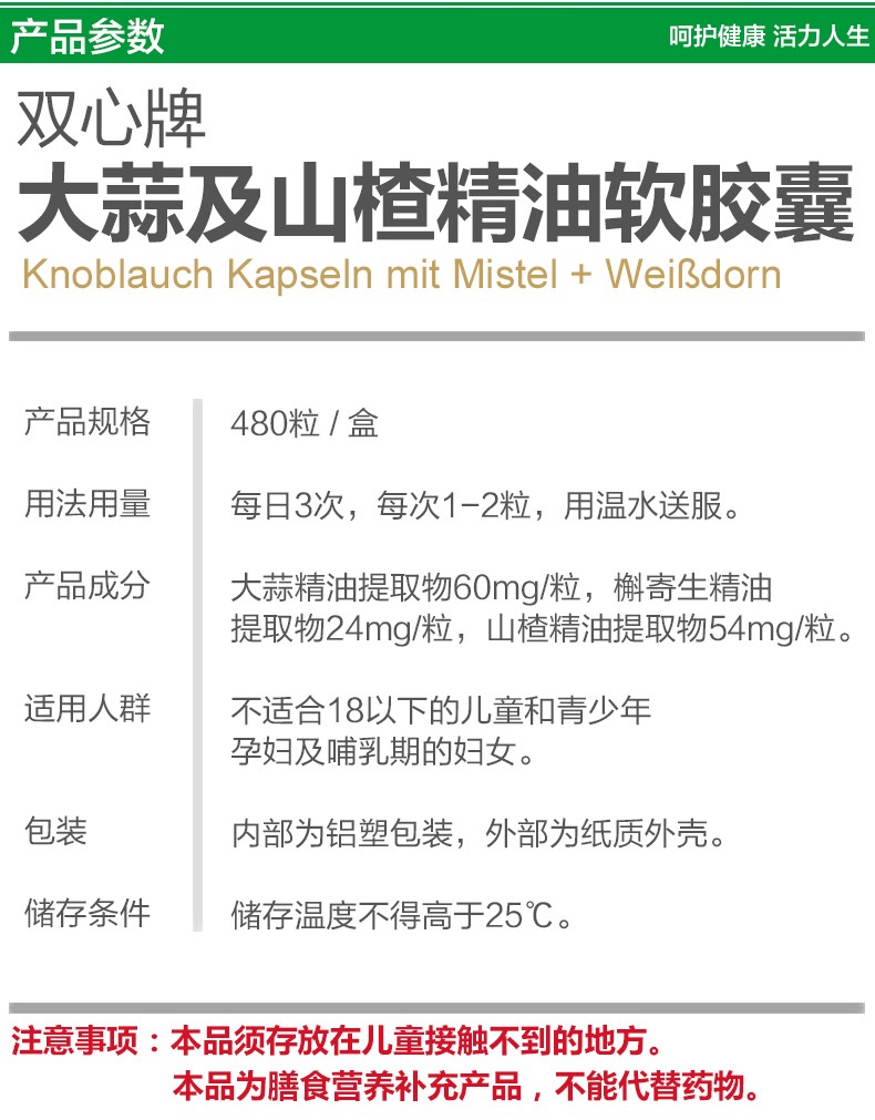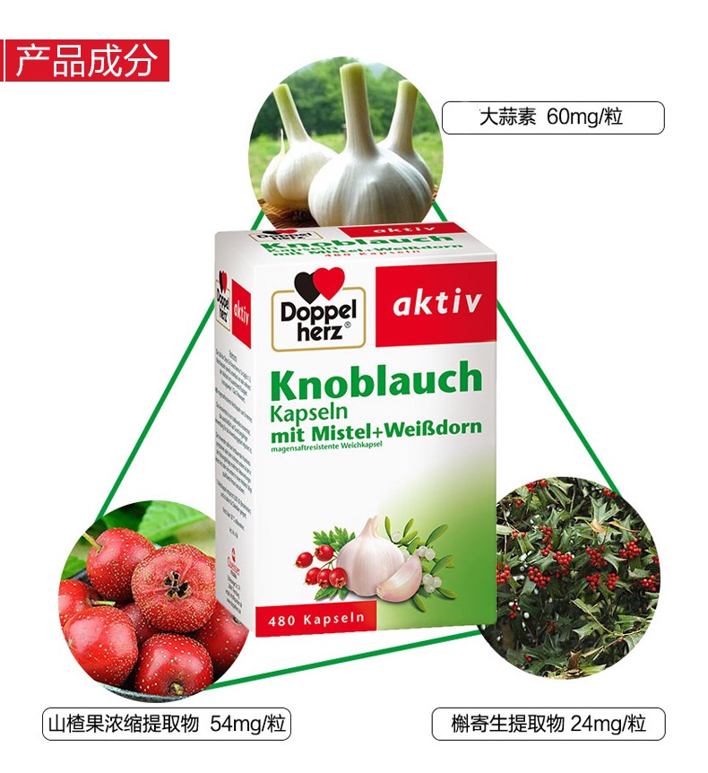 【德国】原装进口双心大蒜山楂精480粒 带给你全面身体健康