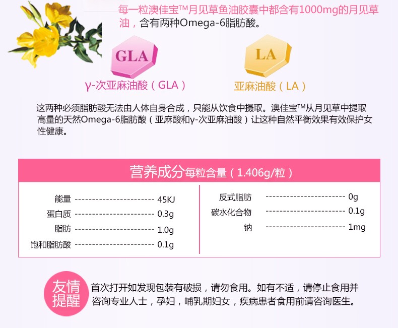 精品商城 >11店超市> 营养保健> 【澳洲】原装进口月见草油190粒