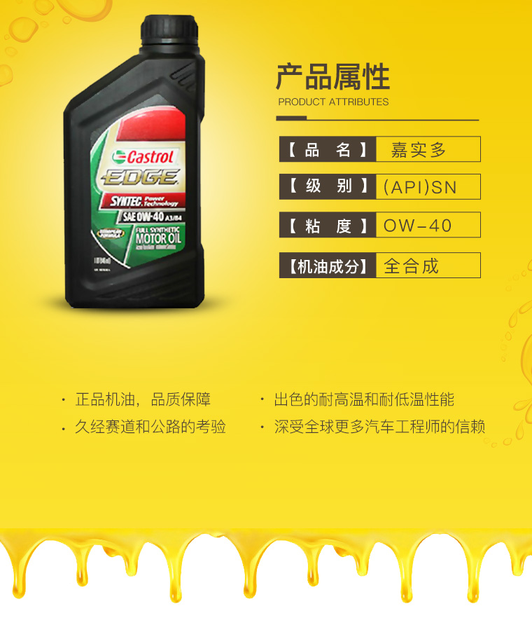 服务包含: 嘉实多全合成SN 0W40(1QT) 5瓶,品牌专用机油格