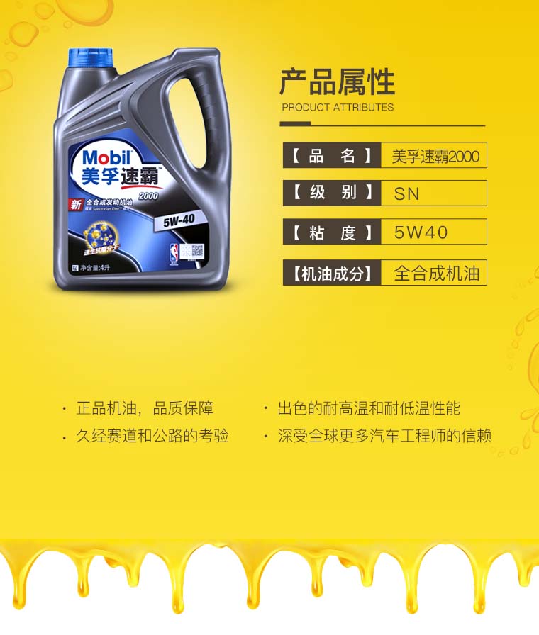 服务包含:美孚速霸2000-SN 5W40 全合成机油(4L),品牌专用机油格。
