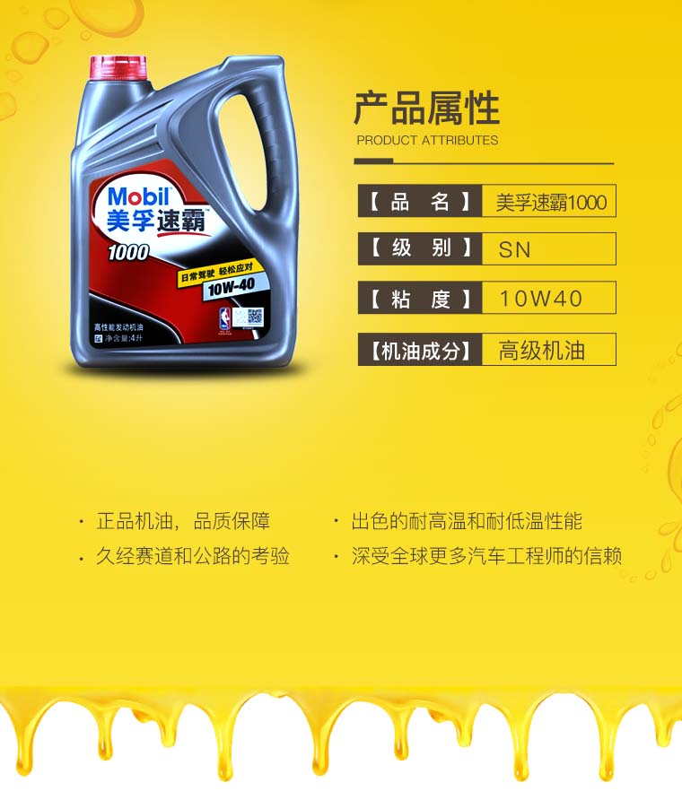 服务包含:美孚速霸1000-SN 10W-40 合成机油(4L) 品牌专用机油格