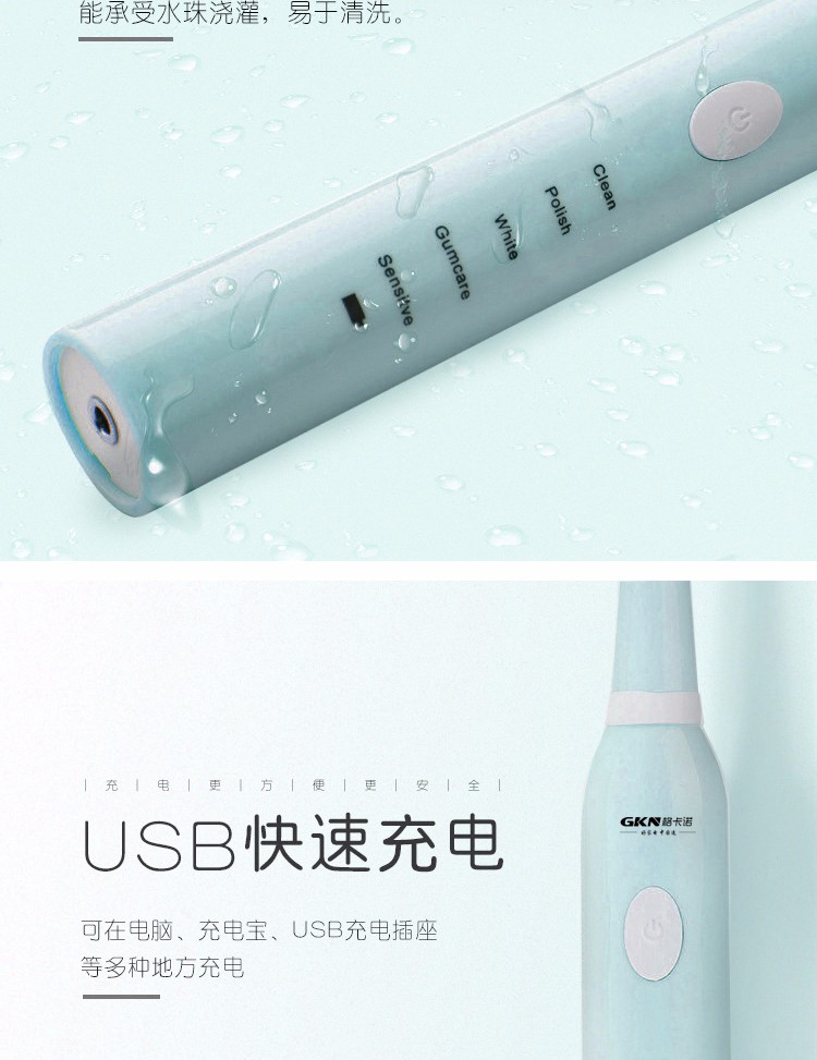 精品商城 >天天特价> 超级周五> GKN格卡诺 超声波电动牙刷智能感应 USB充电 成人电动牙刷
